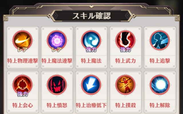 ただし…スキルは同じものを装備させても、どちらか効果が高いもののみが反映されるだけなので、被らないように注意すること。